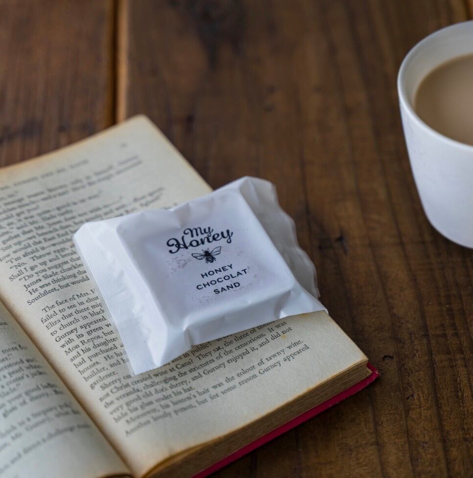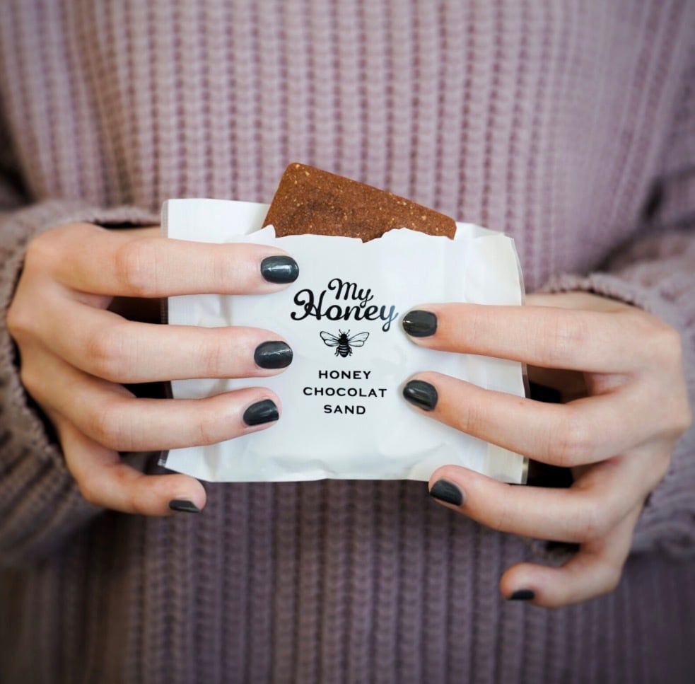 チョコレートに含まれるカカオは、言わずと知れた健康食品。でも、砂糖や乳製品などが含まれたチョコレートを沢山食べるということは、同時に沢山の砂糖を食べているということ。砂糖は「エンプティカロリー」とも呼ばれ、USDA(アメリカ合衆国農務省)は「少量のエンプティカロリーは良いが、殆どの方は健康を害する量を摂取している」と助言しています。そこでハニーショコラサンドのチョコレートは、白砂糖をいっさい使わず生はちみつとカカオのみで完成させました。