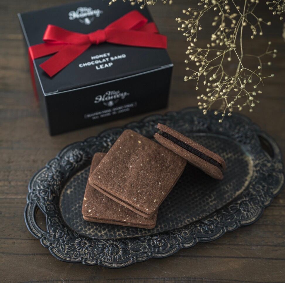 お口に入れた瞬間に、カカオの香りと、生はちみつの奥深い甘み、ナッツとアーモンドの風味が広がって「心もからだも幸せ」な気持ちになれる、とっておきなショコラサンドです。