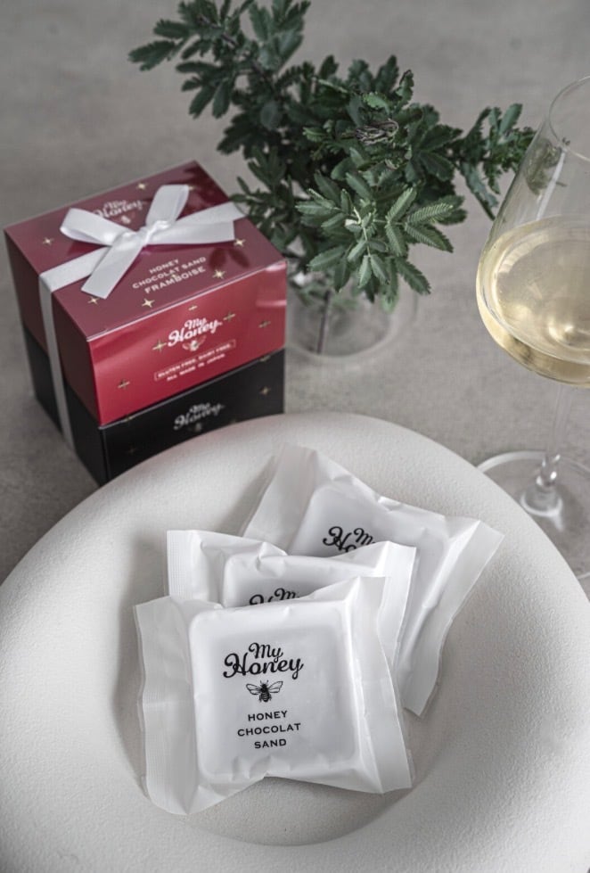 フランボワーズ:アカシア蜂蜜、タピオカ粉、カカオパウダー、米油、アーモンドパウダー、カカオバター、フランボワーズパウダー、アーモンド、ヘーゼルナッツ、ピーナッツペースト、食塩