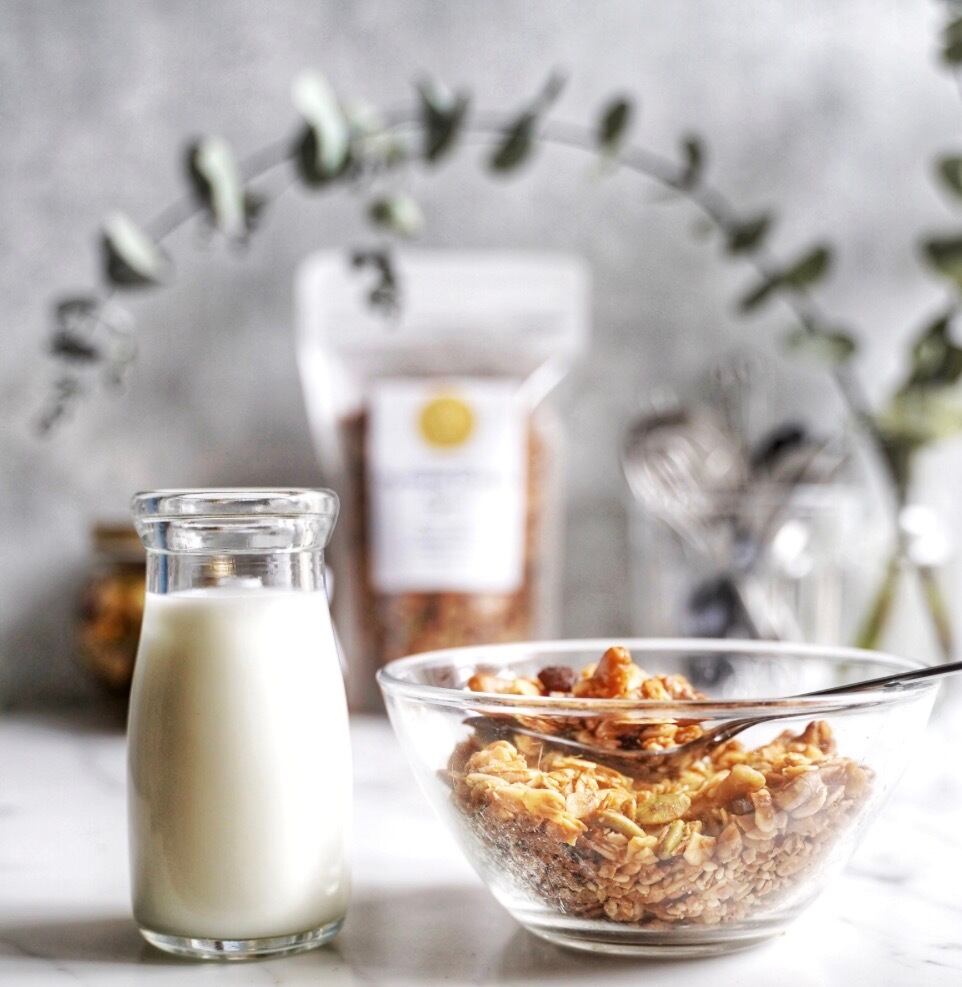 健康に良さそうなイメージのあるグラノーラ。でもたくさん入っている砂糖が気になる。グルテンが気になる。保存料などの添加物が多くて、ほんとうにカラダに良いのかわからない。ダイエット中だから、血糖値が上がり過ぎる食べ物は、できるだけ食べたくない。でも忙しい朝にはグラノーラのように、たくさんの栄養が一度に摂れるお手軽な朝食が良い。そんな悩みを一挙に叶えるグラノーラです。