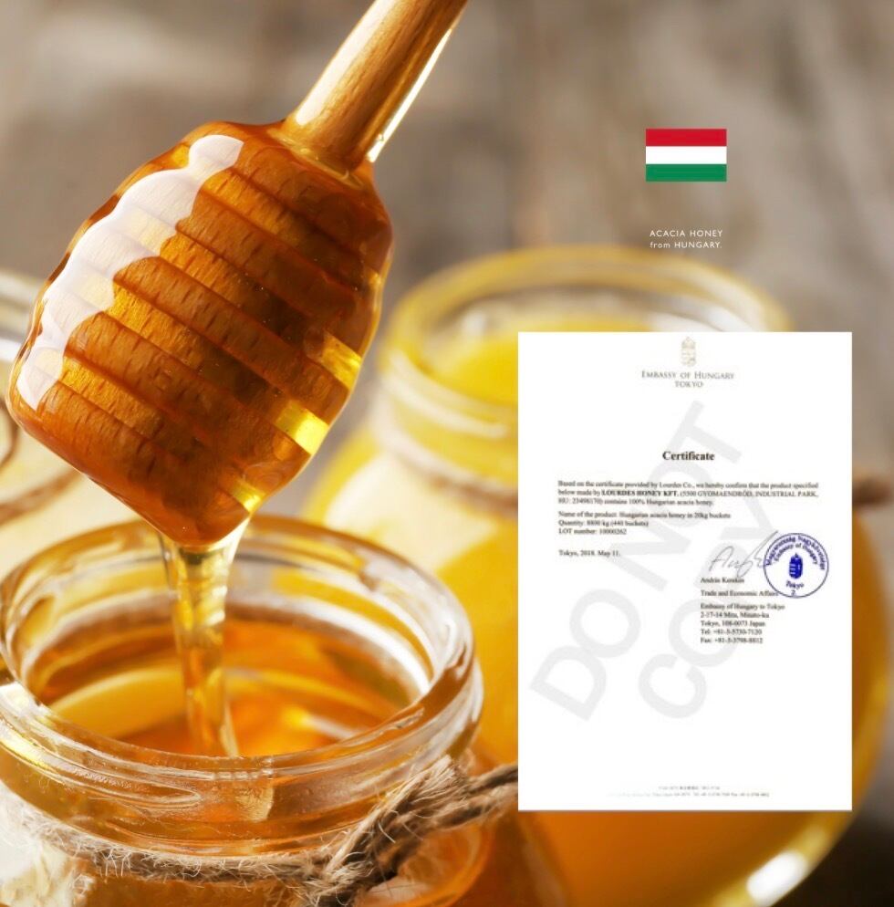 マイハニーは、ハンガリー大使館から日本で初めて認証を受けました。私たちが「美味しい」はもちろん「安心」にも心を込めて取り組んでいる証のひとつです。