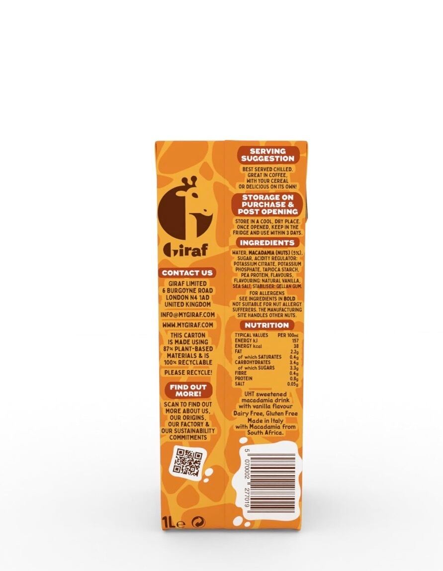 【4月上旬入荷予定】ジラフ マカダミアミルク バニラ 1L 6本